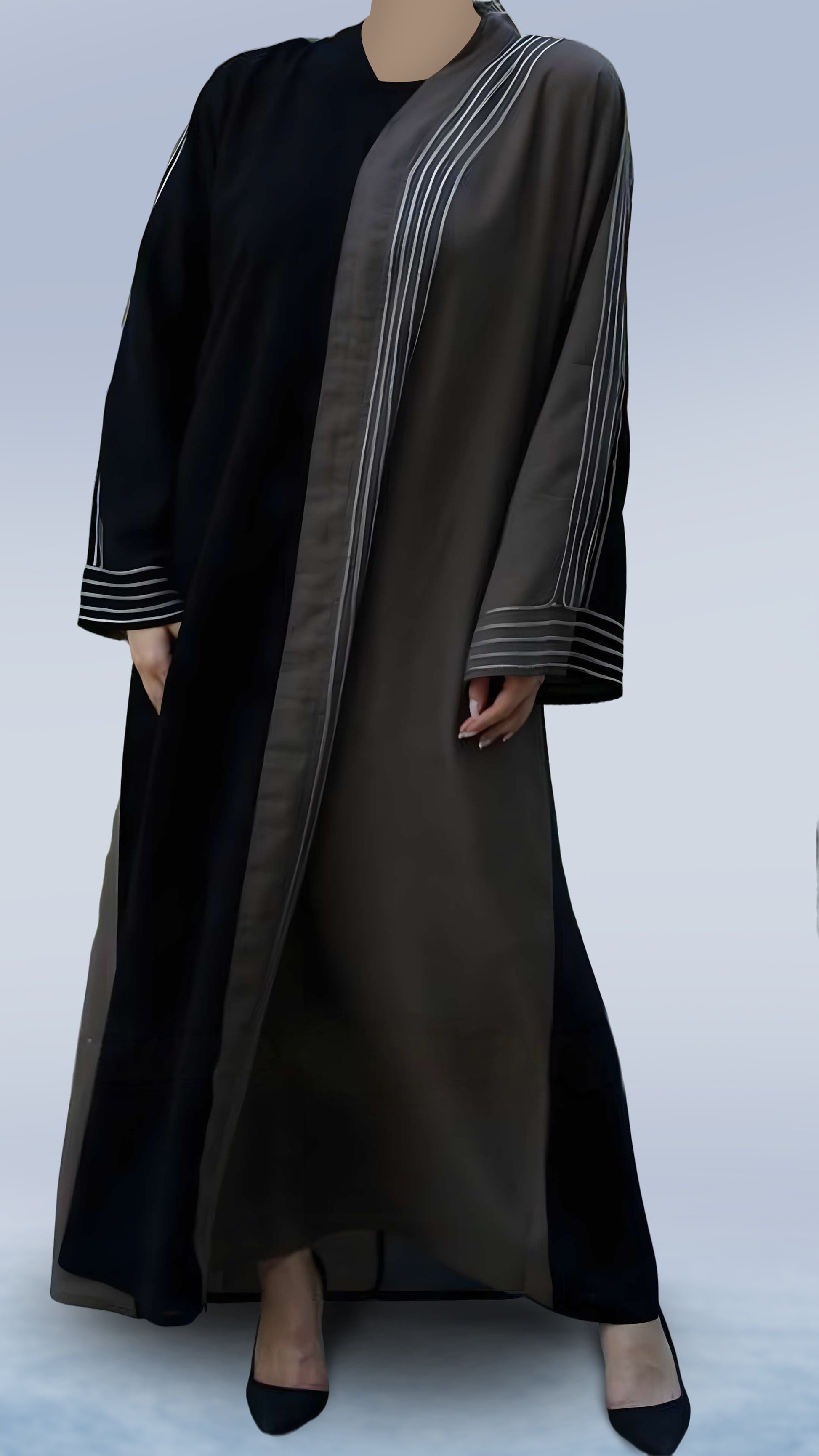 This abaya is available in two versatile shades of Masha Crepe, carefully selected for their elegance: